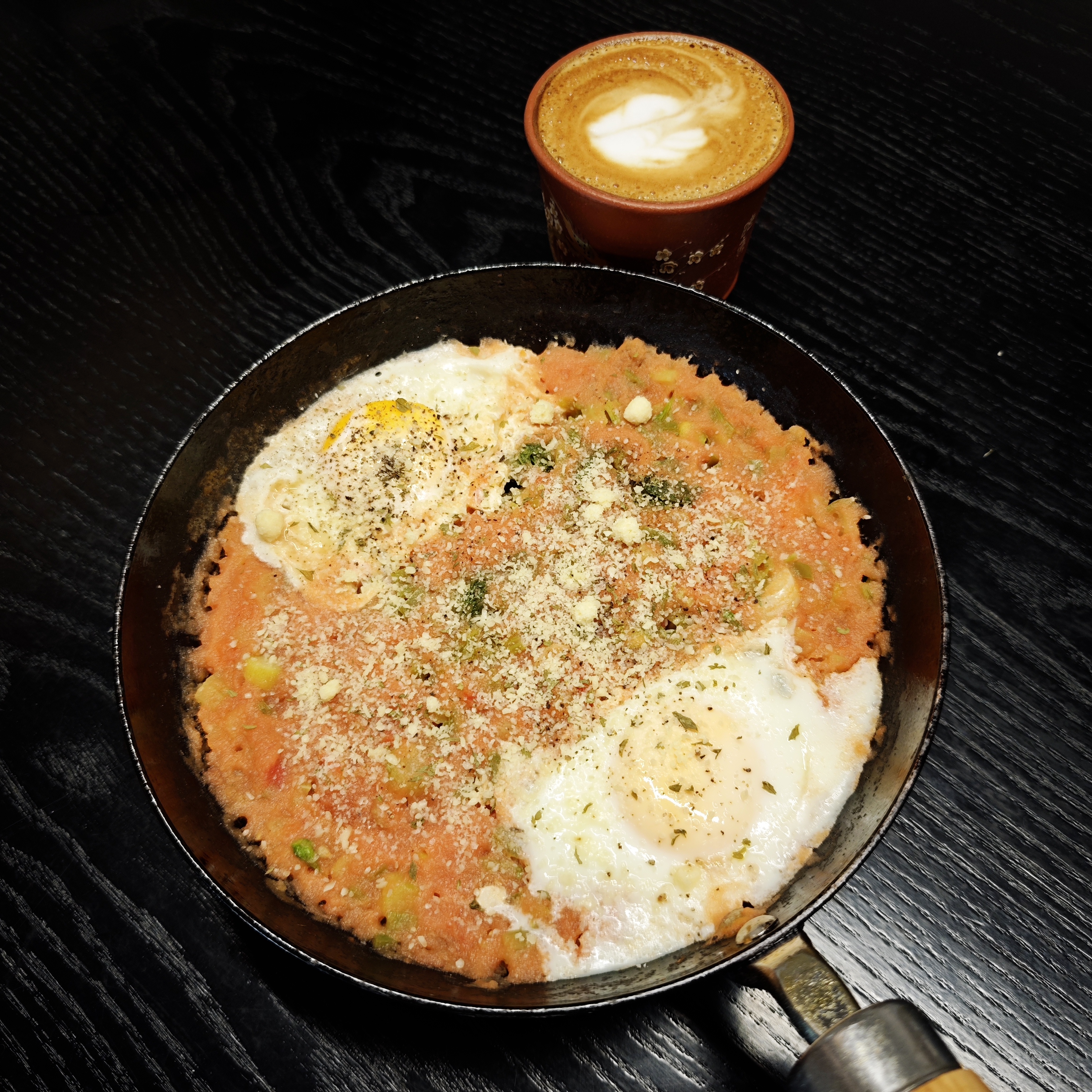 - 在番茄中挖出两个洞打入鸡蛋,最小火盖上锅盖焖3-5分钟,温泉蛋三分钟,全熟蛋五分钟。