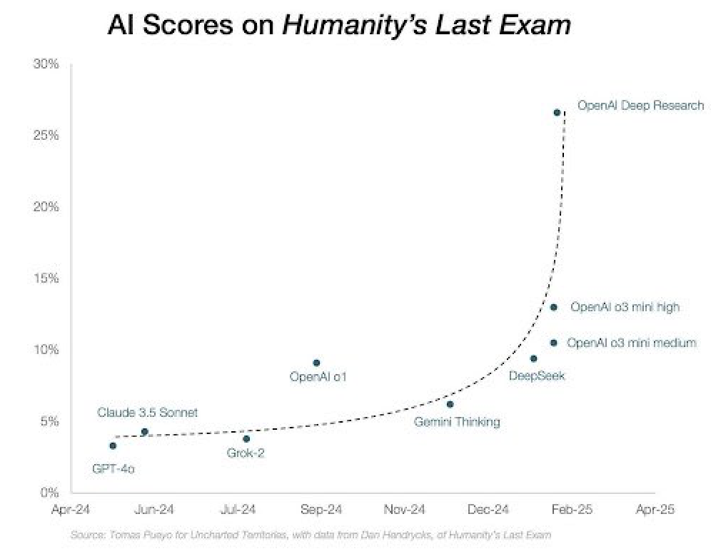• DeepResearch 最高得分 25 分(满分 100),排名第一。