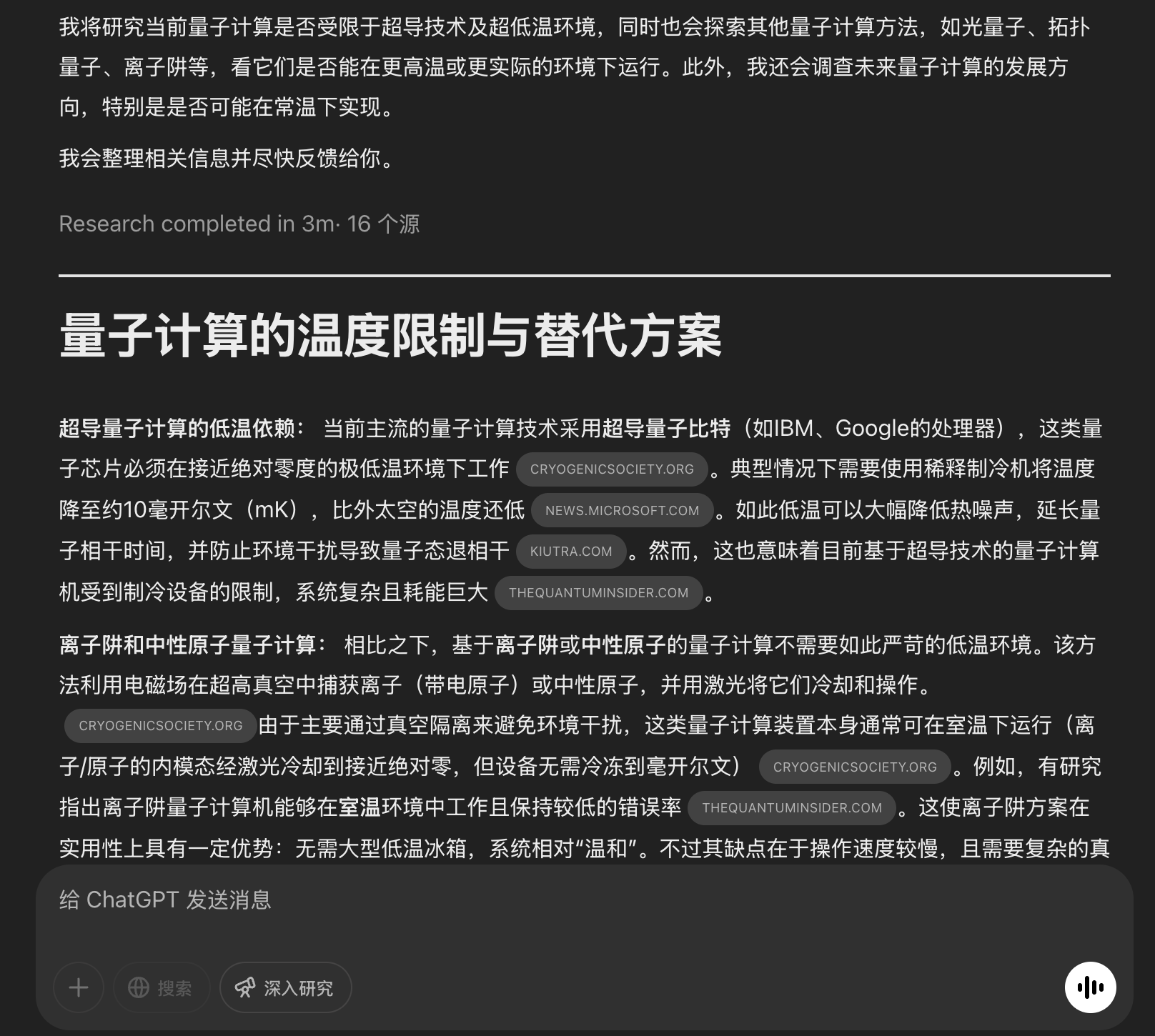 • 它查阅了 16 个高质量信息源(包括政府网站、大学论文、核心期刊)。