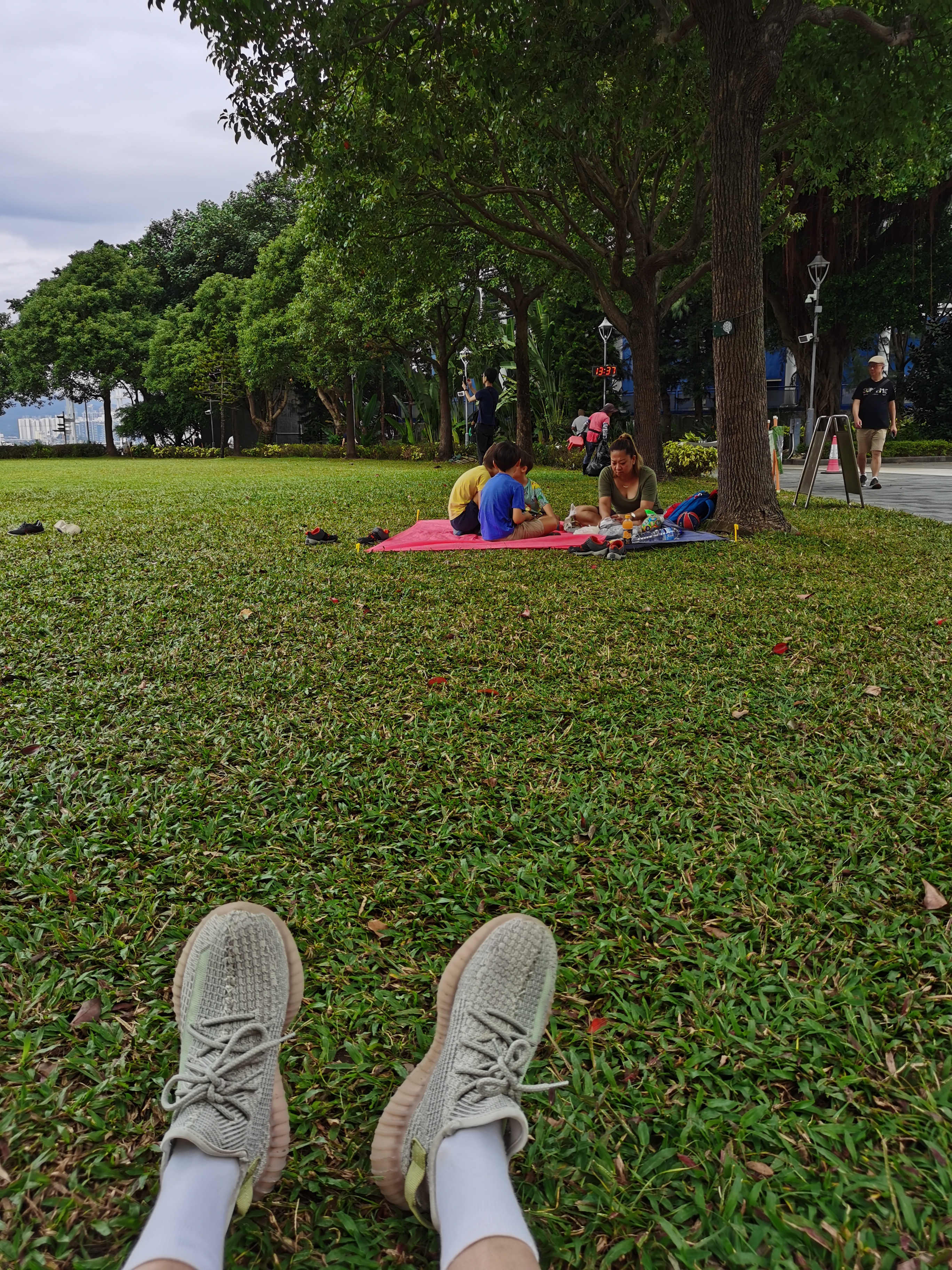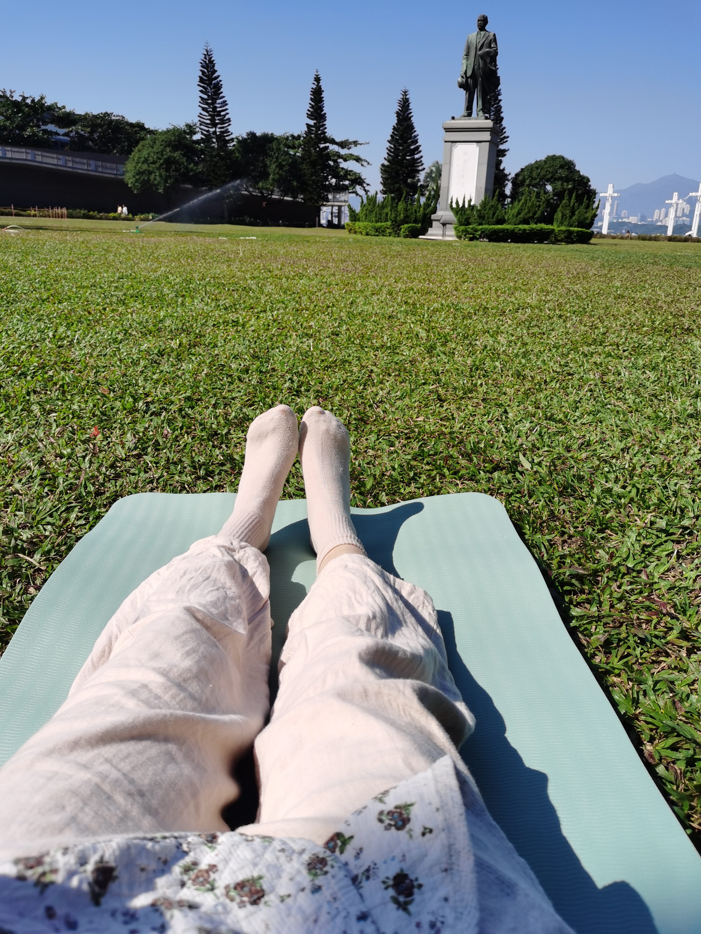 之前吃完午饭我会在中山纪念公园和海边散步,看到很多人在草坪上晒太阳或者野餐,我就蠢蠢欲动想试试: