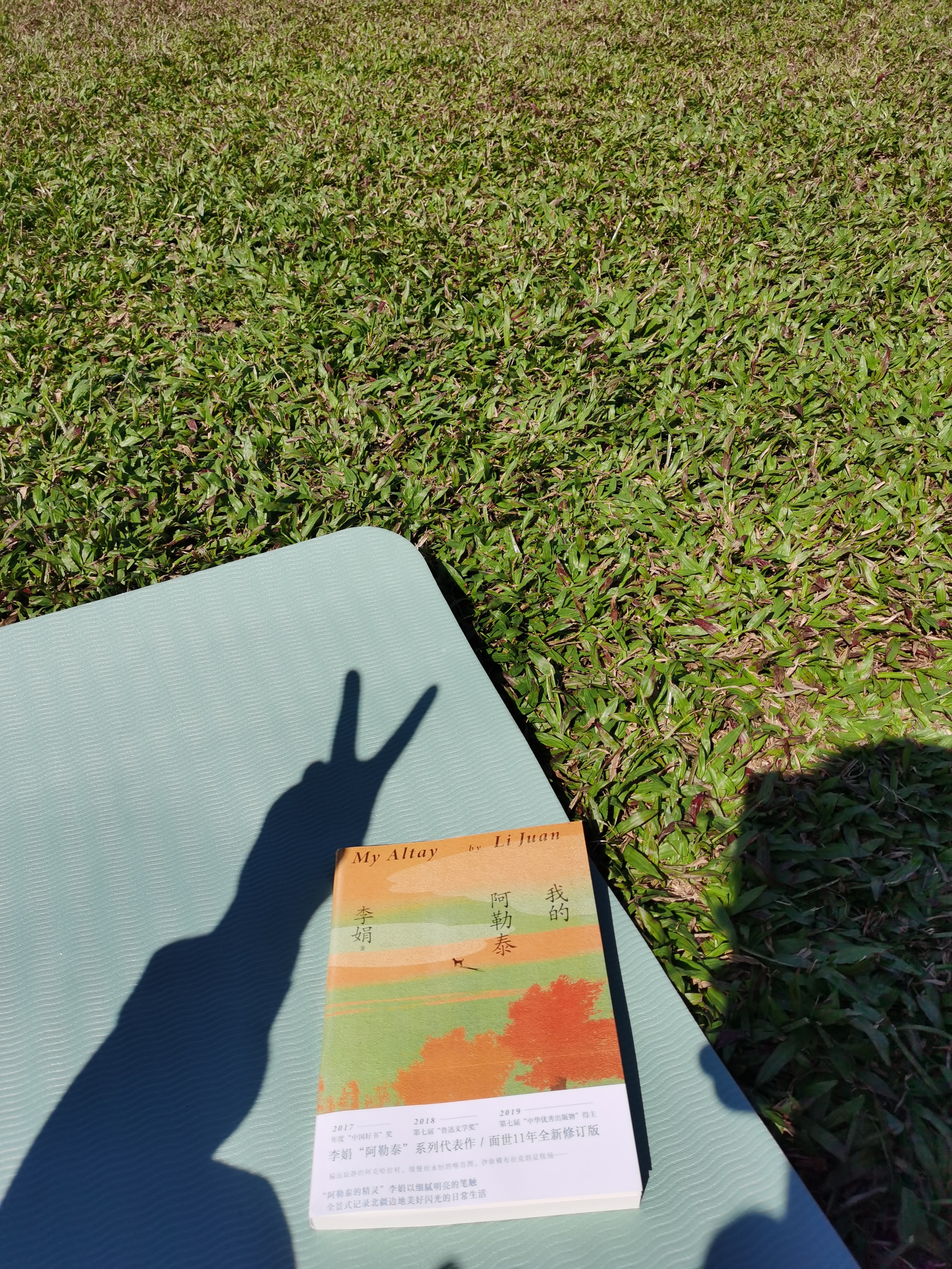 终于在昨天开始了第一次体验,今天还带了《我的阿勒泰》去看了几页才躺下。头躺在树荫里,下半身露在阳光里,好暖和。不过二十分钟的光景,迷迷糊糊中风吹来还有点小冷,起来发现树荫不知不觉覆盖了好大一片,起身去开工。