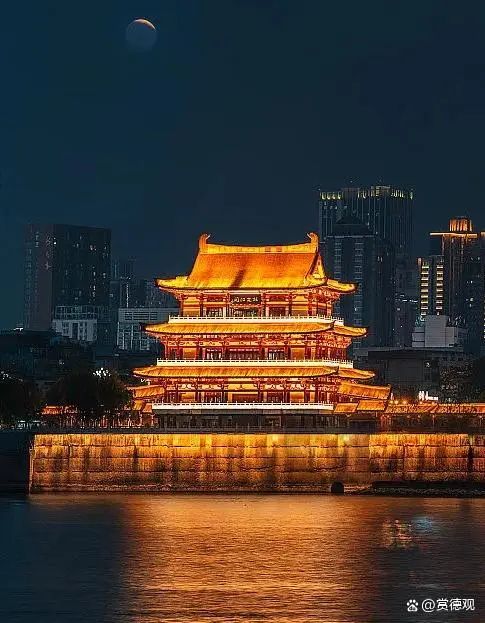 夜幕降临时,杜甫江阁如同湘江边的璀璨明珠,立于江畔,可眺望两岸灯火,诗意盎然。