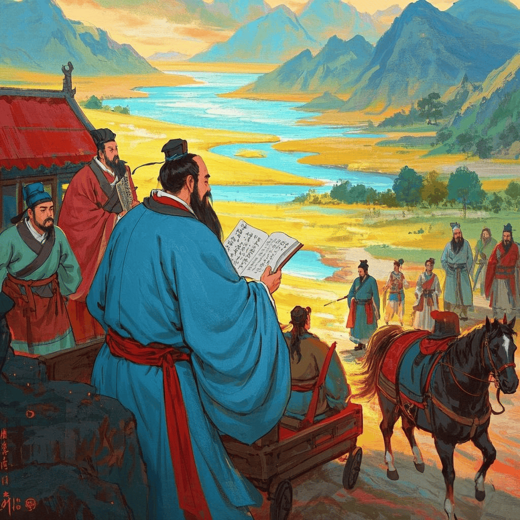 但孔子的理想远不止于此。他希望恢复周礼的“大同”社会——天下没有战争,没有剥削,人人都能安居乐业。为了实现这个理想,他开始周游列国,宣传自己的学说。他先后去了卫、曹、宋、郑、陈、蔡等国,向各国君主讲述“仁政”“礼治”的重要性。