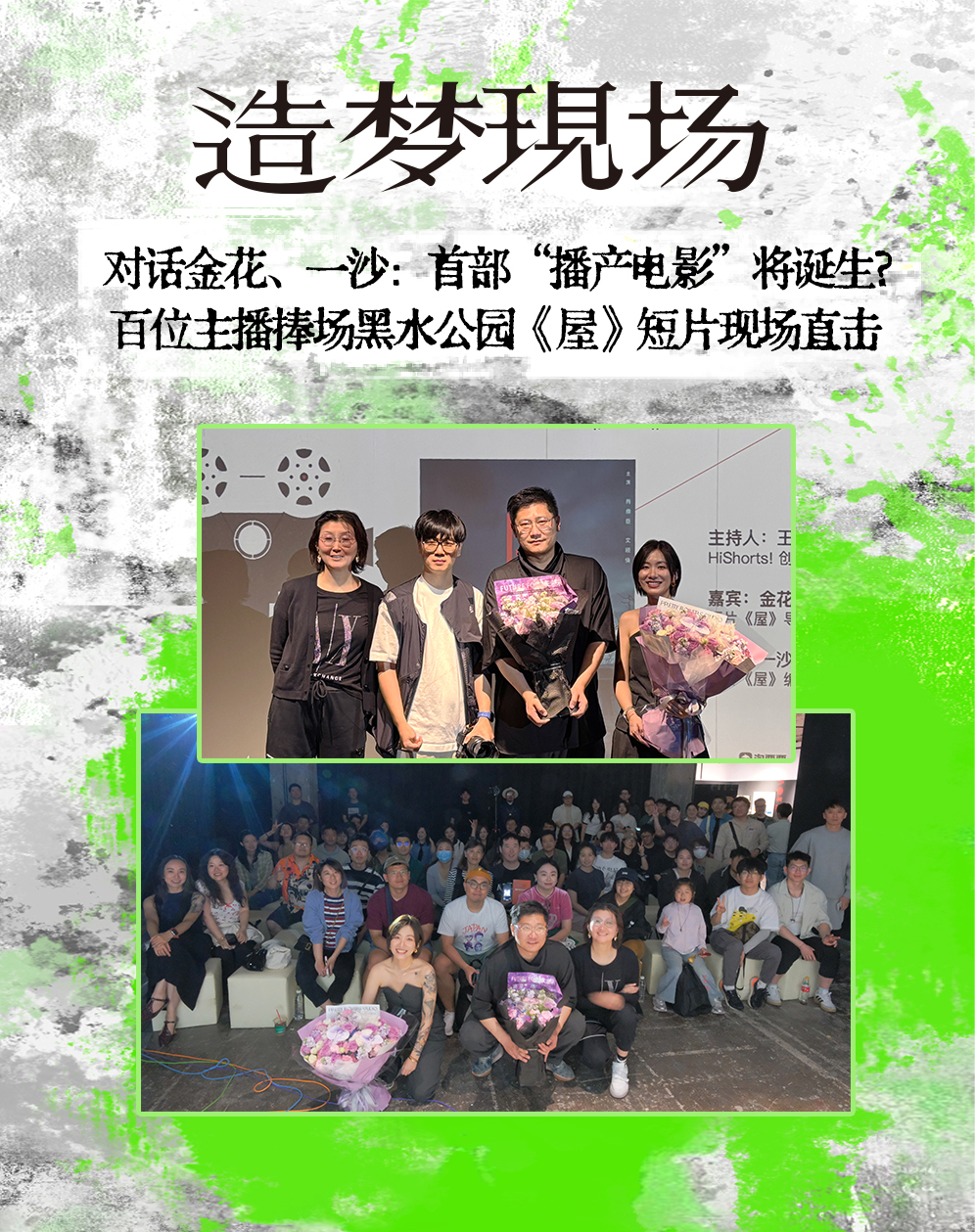 本期「造梦现场」是短片《屋》的映后,台上嘉敏是《屋》的导演金花、编剧一沙,但大家更熟悉他们的身份是播客主播,两个人共同有一档时尚播客《特费神》,金花也是头部影视播客《黑水公园》的创始人,大家一起聊了聊短片创作背景与初衷、短片制作过程、创作理念与风格、播客与电影创作的联系以及未来创作计划。
