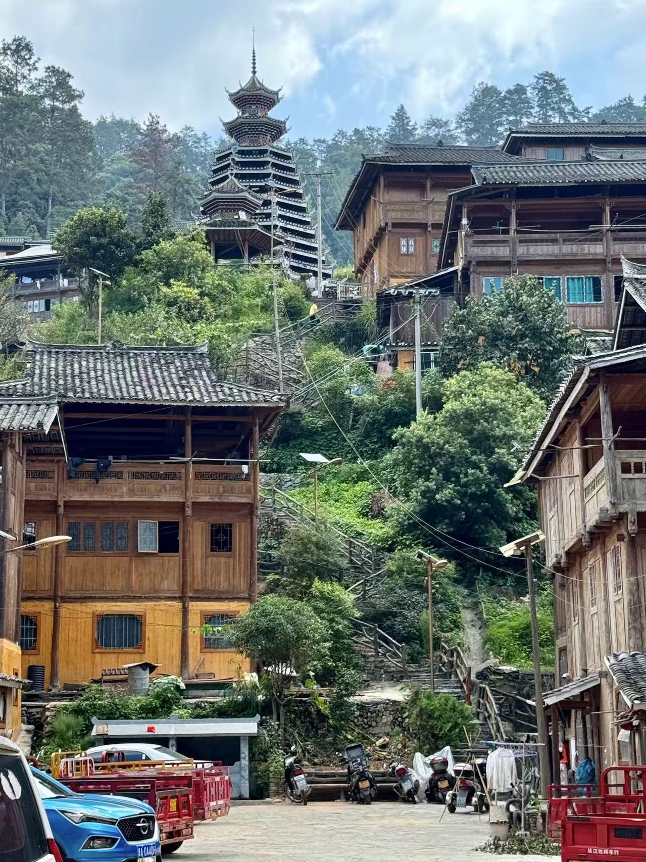 路过从江县城看到了号称最大的侗族鼓楼,并邂逅了都柳江和即将惊艳我们的百香果~除了顺路之外,更重要的是在这里解决了午饭,能量满满无后顾之忧的挺进山寨。