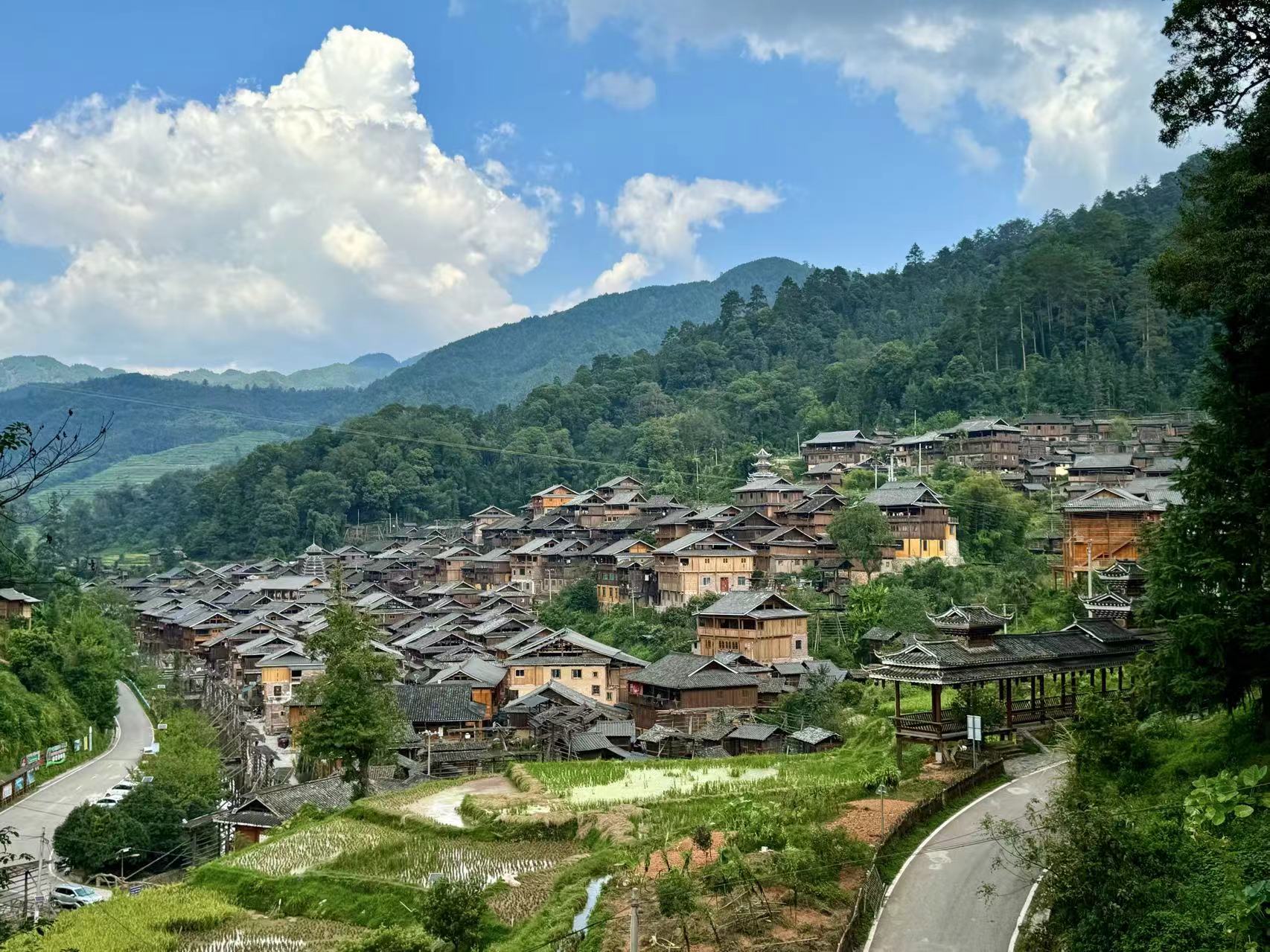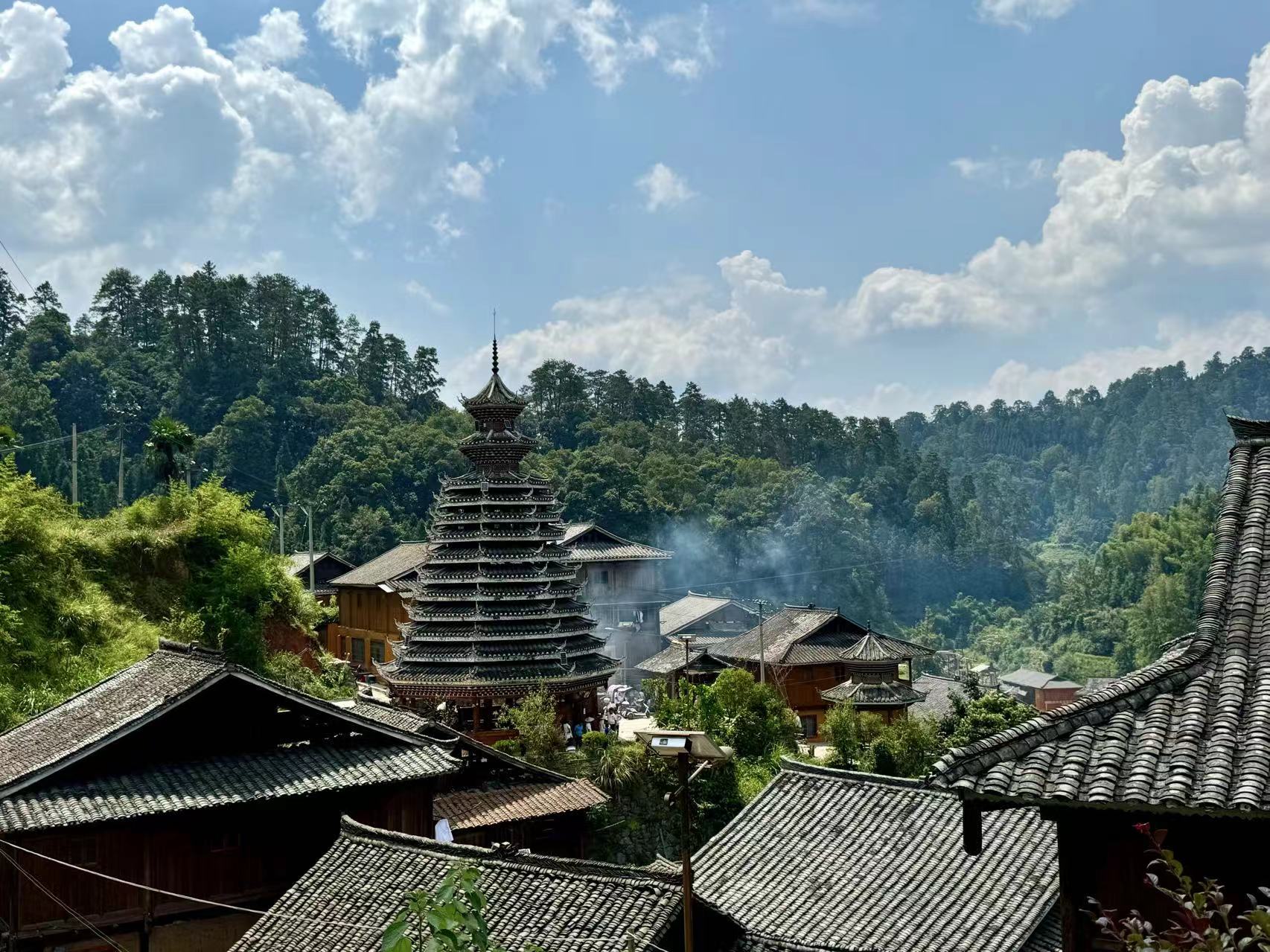 观景台上看到的蓝天白云和占里》》》》