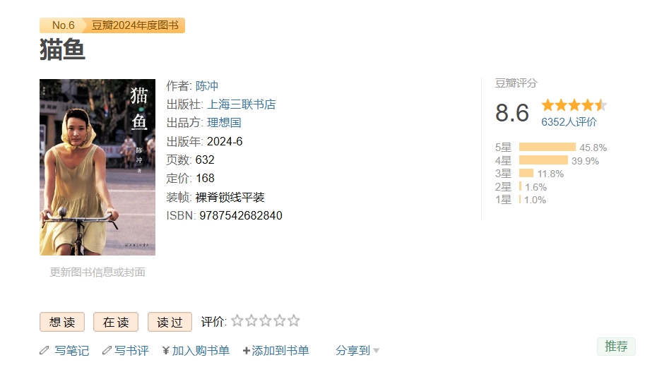 碳酸本月推荐书籍:《猫鱼》作者:陈冲