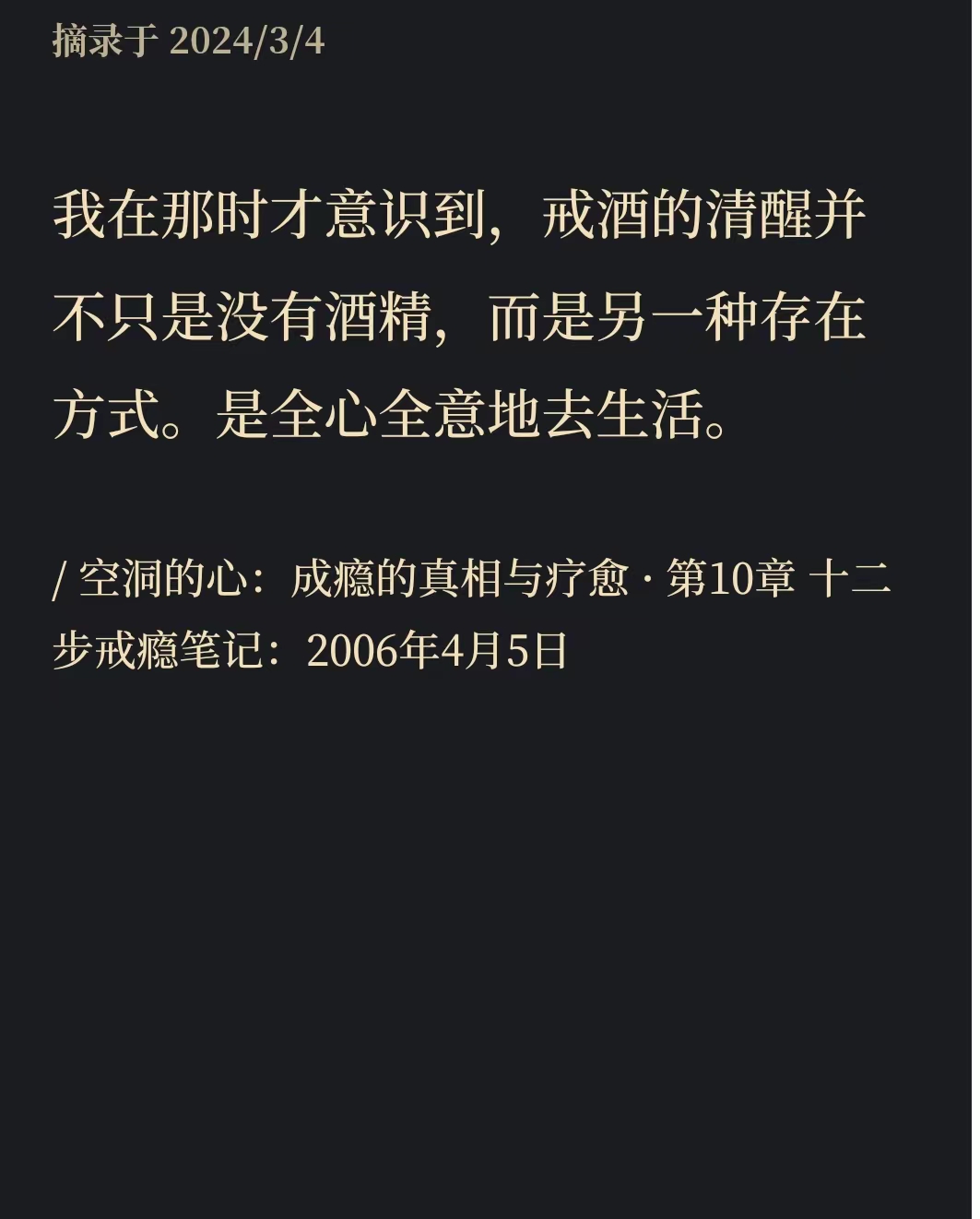 希望每个对生活和未来有所预期的朋友,能够摆脱成瘾物带来的快感,觉察并肯定自我感受,去关注自身之外的世界,也希望即使处于痛苦和压力之下,也不要陷入到内心的情绪中。