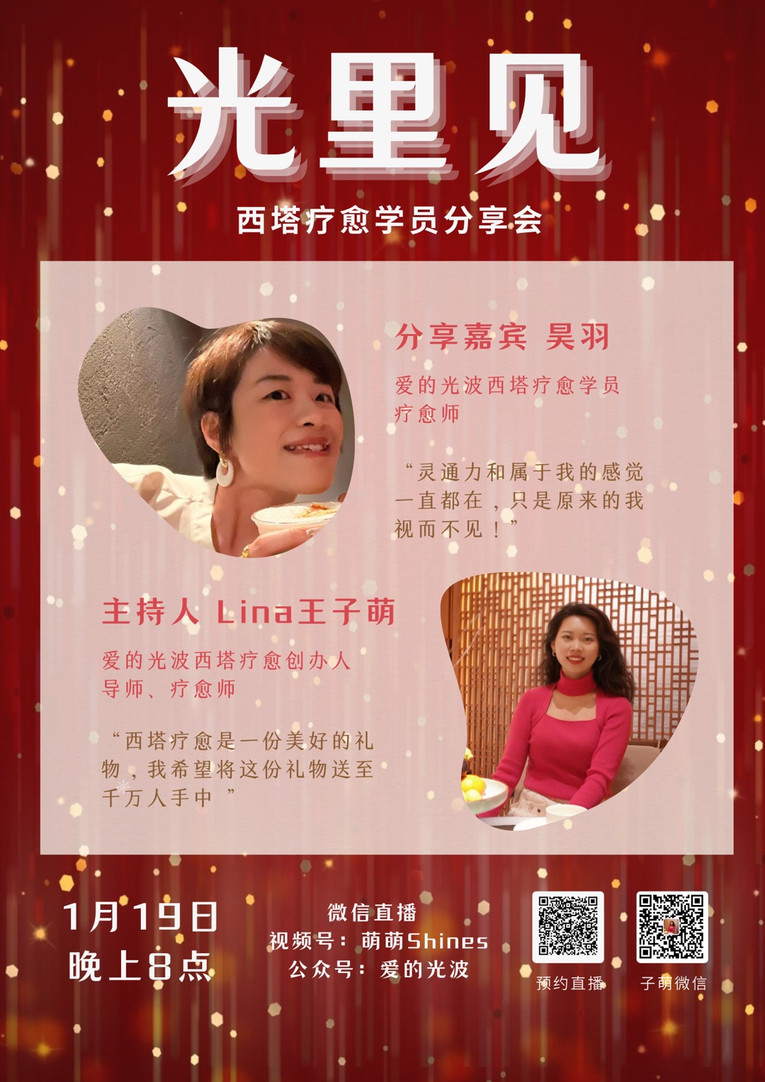 《光里见》是西塔疗愈方向的专题录播,每一期,我会邀请西塔疗愈师、导师们来分享ta们的西塔疗愈之旅