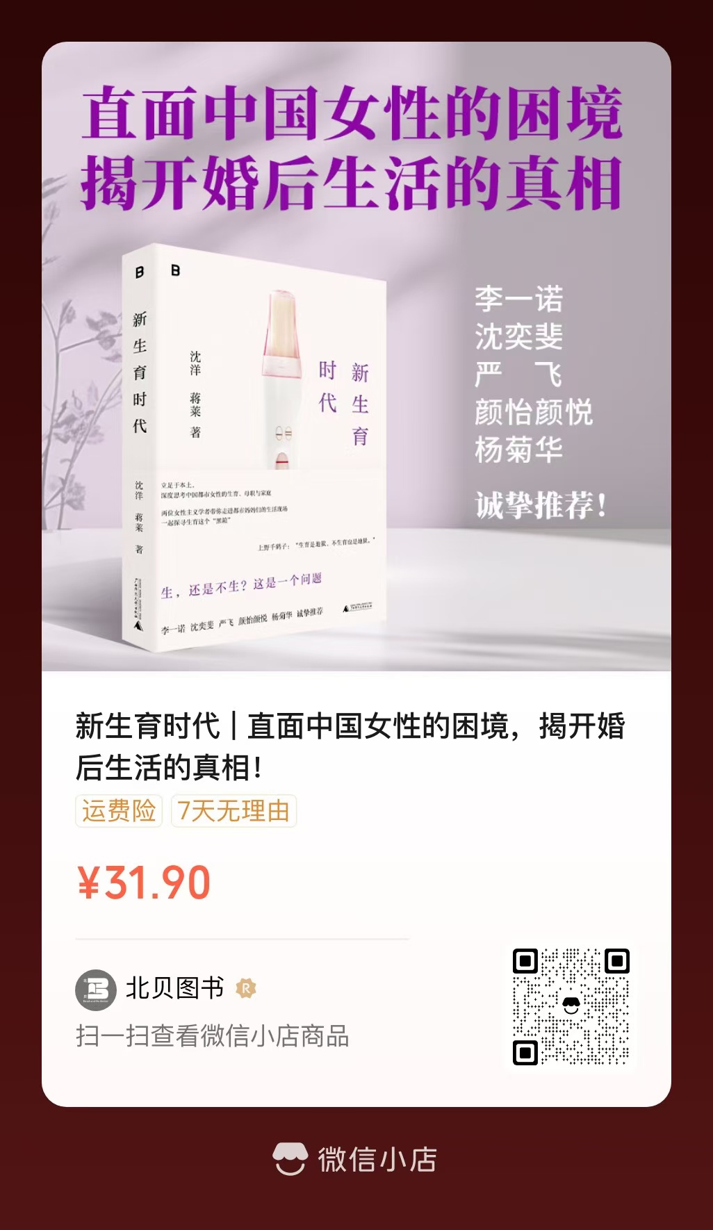 11月12日,我与《新生育时代》两位作者沈洋与蒋莱进行了直播访谈,对生育和母职困境进行了讨论,分享几个比较受触动的点: