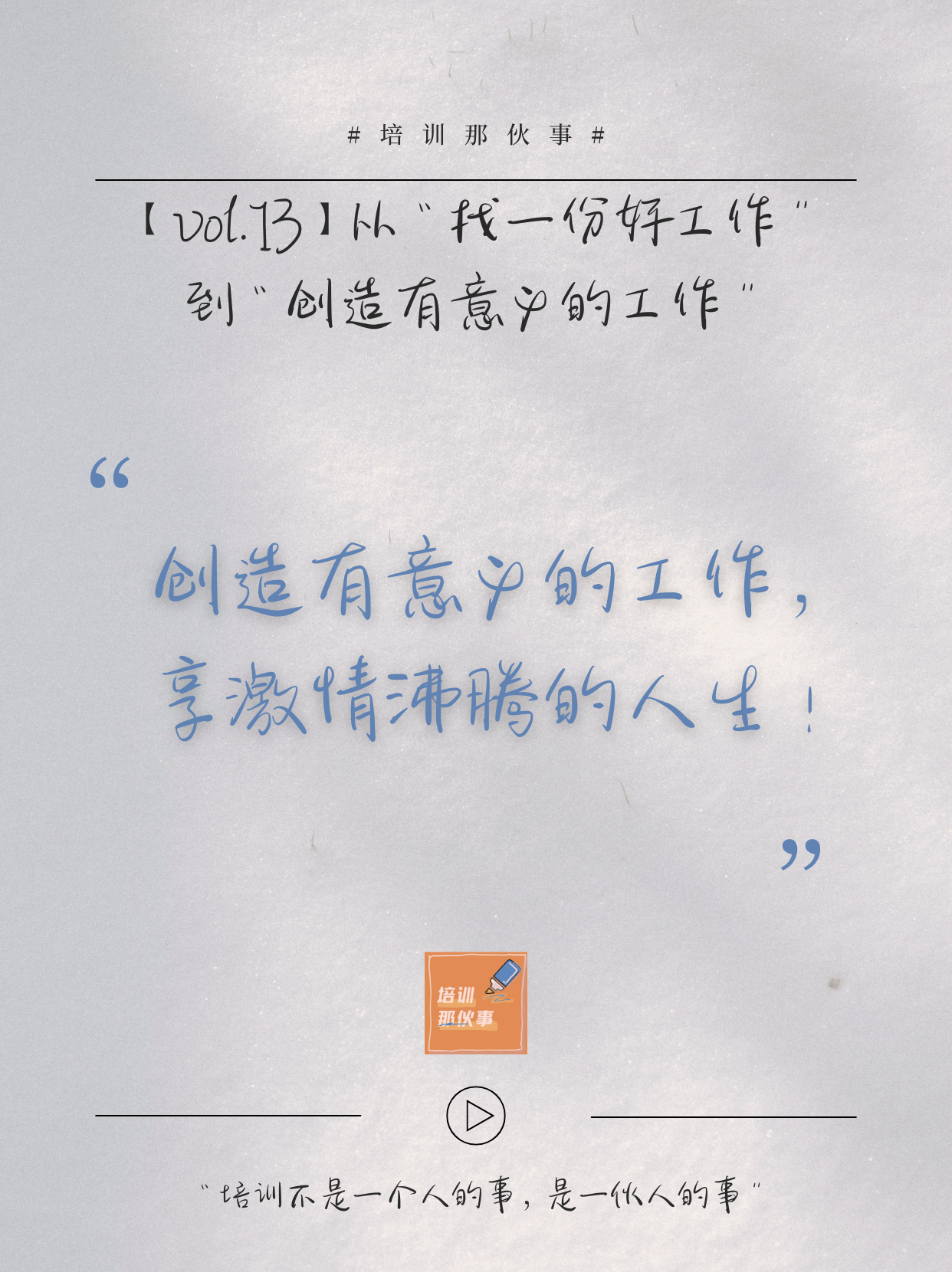 本期话题:Vol.13:从“找一份好工作”到“创造有意义的工作”