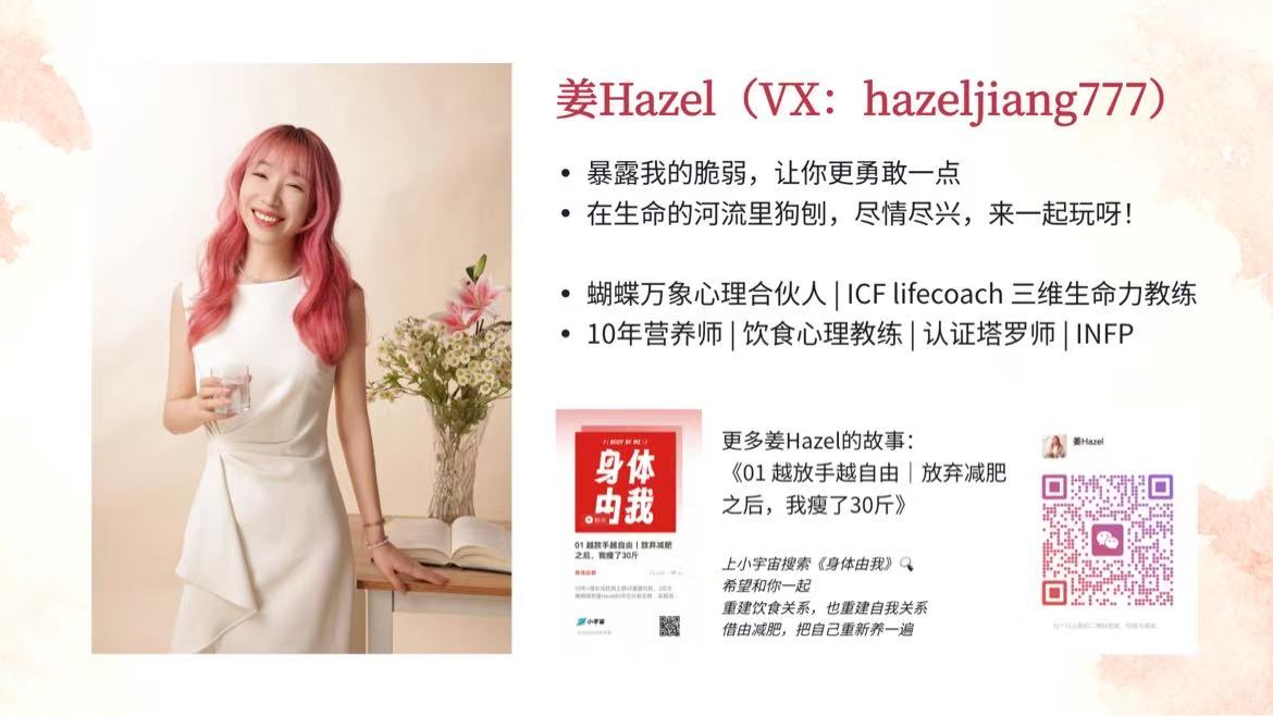 希望和你一起,重建饮食关系,也重建自我关系。借由减肥,把自己重新养一遍,获得更大的自由。