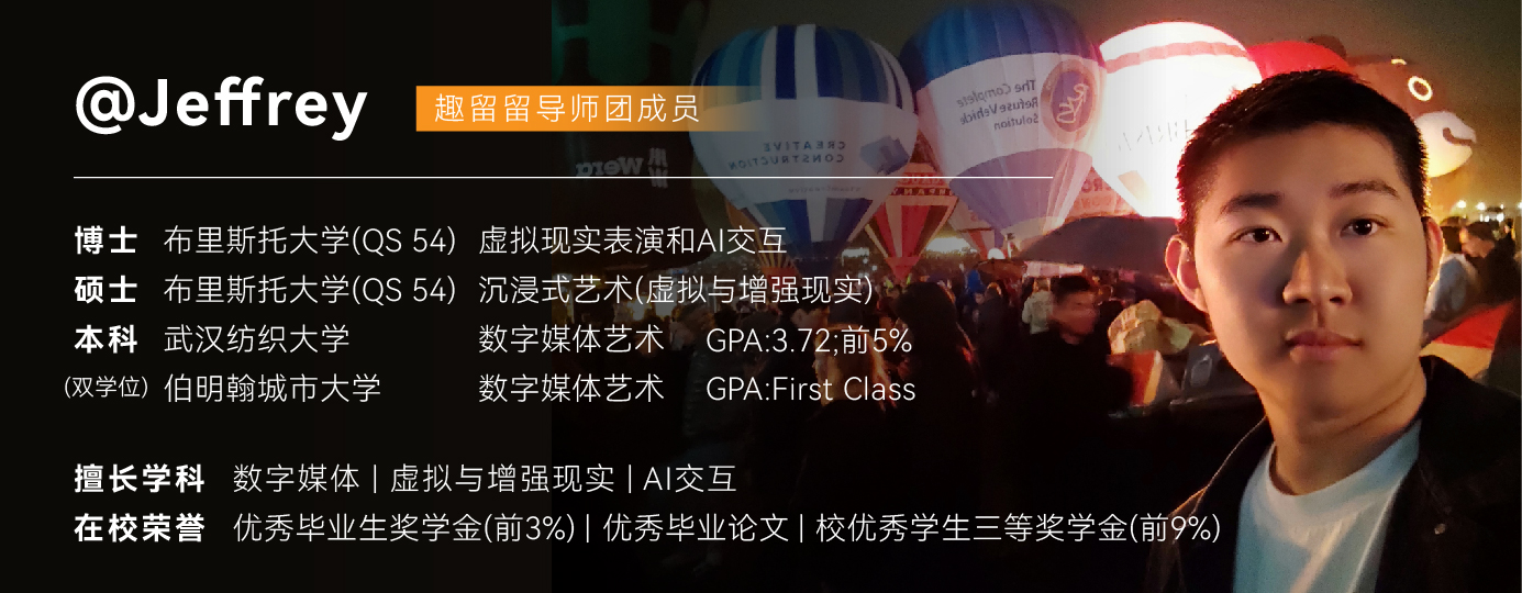 本期嘉宾 Jeffery,学术背景硬核,实战经验拉满💪——陆本英本+英硕+英博全链路体验,深耕交互设计,专攻 AR/VR & AI 交互 领域!