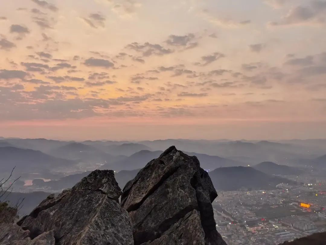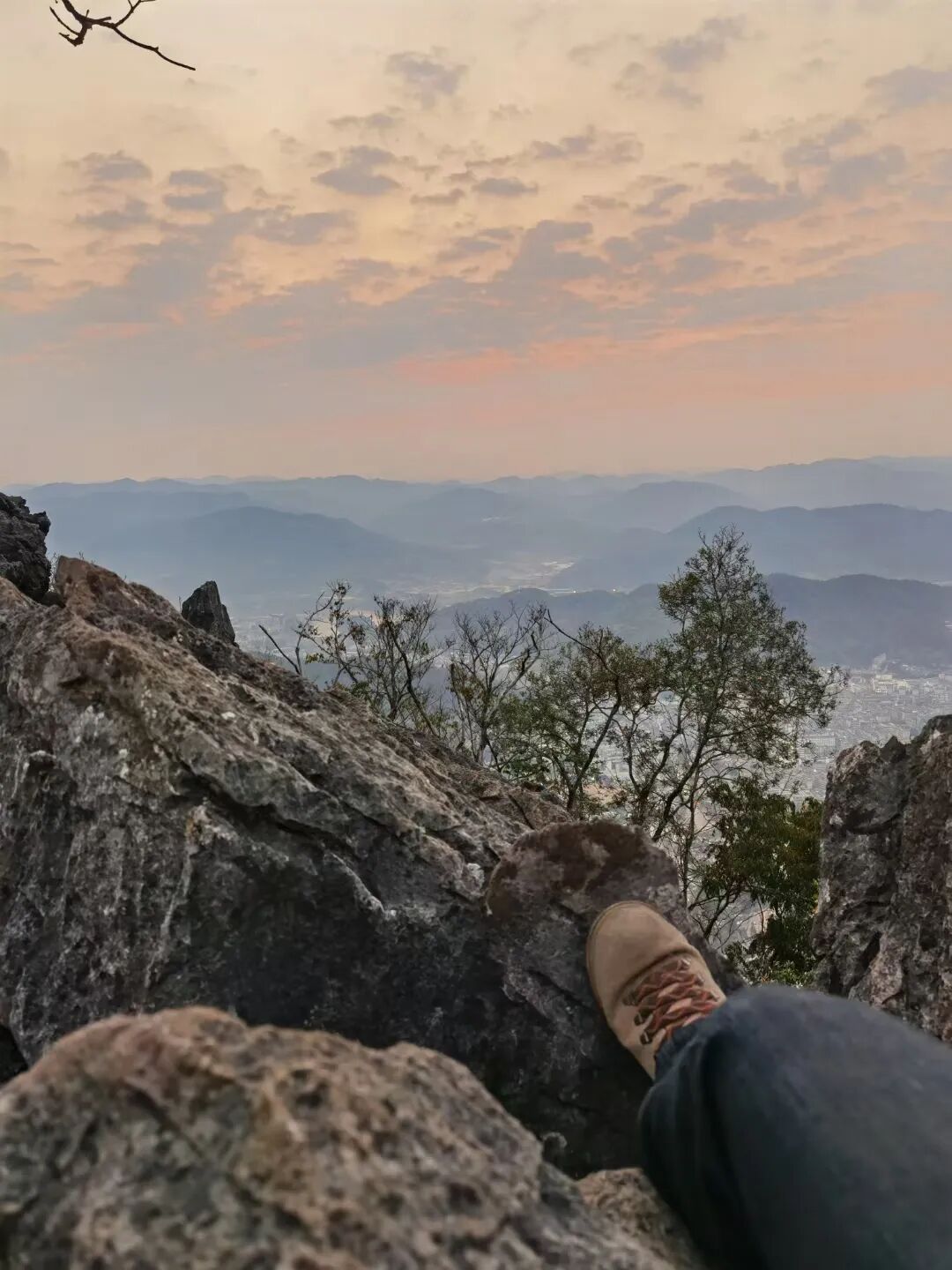 云南还是在广西我忘了,当时我为了看日出特意去爬了一个山,叫西门牙子,我记得是叫这个名字,然后我那天晚上我的帐篷搭在半山腰,然后早上第二天4点半起来的,爬了一个多小时的山去看了日出。非常棒,那种感觉特别棒
