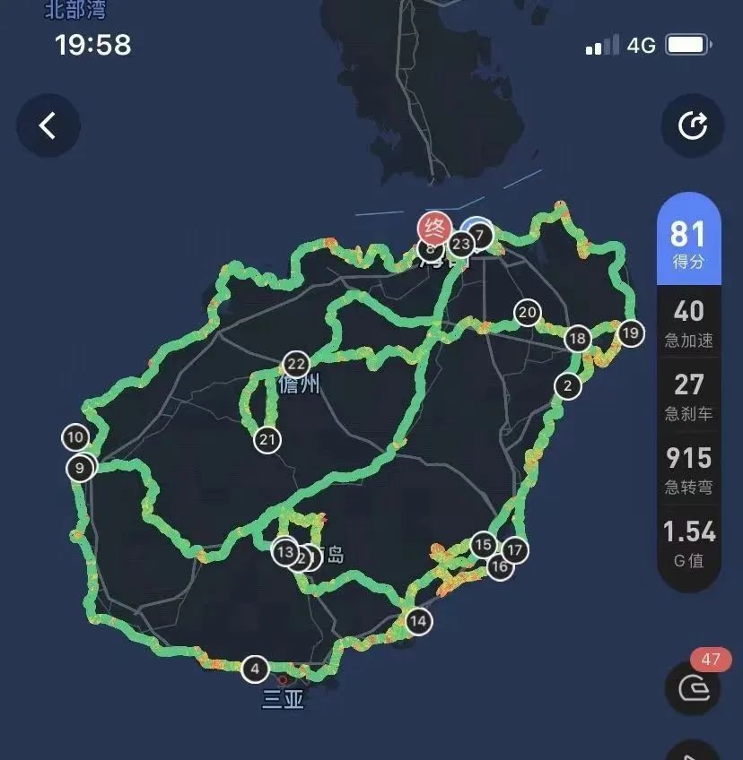 所以那边有一些朋友,然后在年前的话,正好到了广州,就是约了朋友一起见个面啊。然后在广州待了7天,又按捺不住寂寞,因为朋友陆陆续续就该回家过,都过年,然后我一个人在广州也挺无聊的。那就按捺不住了。我又骑着车就开始往海南走了、从广州出发到海南,这是我的在旅程当中的第二个阶段。所以在这个过程当中就是到海南是在年前。然后我的过年,是在三亚过的,这次在海南,一共呆了大概有十七八天的时间,我有海南岛环岛,正一圈反一圈,环了两圈,然后中线南北线都都走了。