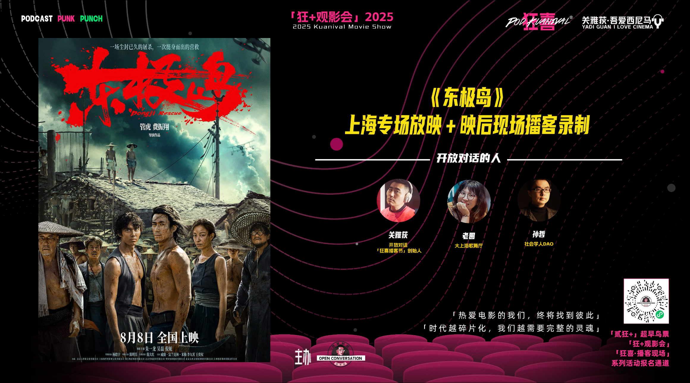 「狂+观影会」Kuanival Movie Show,是聚焦国内院线公映电影的90分钟长映后线下开放对话播客录制活动。