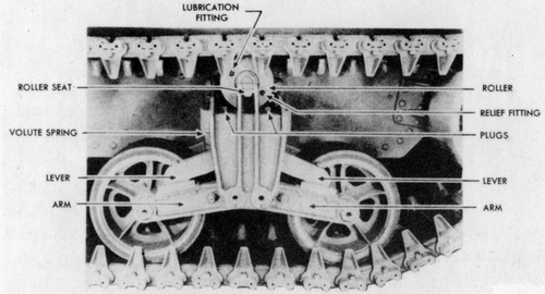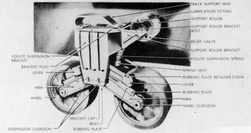 M3及M4系列坦克早期型号使用过的垂直涡卷弹簧悬挂装置轮轴架配置变迁