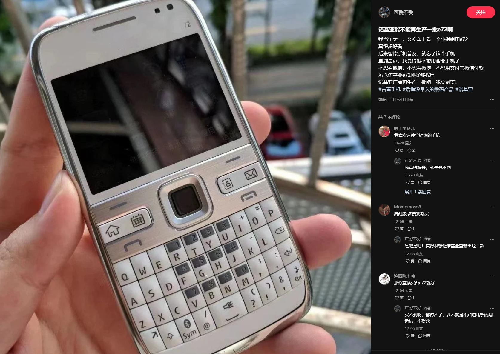 除 APP 老年模式外,越来越多年轻人开始喜爱老年机。一些人厌倦了直板全触屏手机的复杂操作和社交媒体的纷扰,寻求更简单的通讯工具。诺基亚 3210 复刻版开售即售罄,线下老年机展台受追捧,价格上涨,都表明这一趋势。