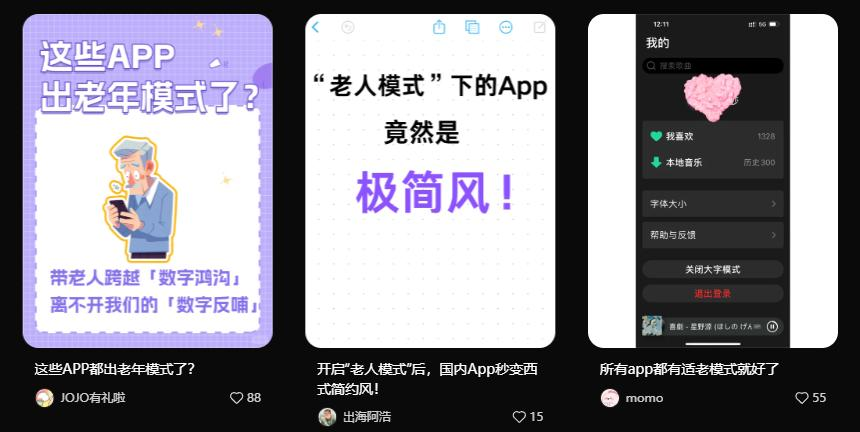 所谓 “老年模式”,本是软件厂商为响应工信部适老化和无障碍改造要求,为年长者设计的简化界面,具有放大字号、清晰图标、操作简便等特点。然而,令人意想不到的是,这一模式也吸引了众多年轻人。在小红书上,许多年轻人分享开启老年模式后的体验,称赞其无广告、无弹窗、界面干净的优点。