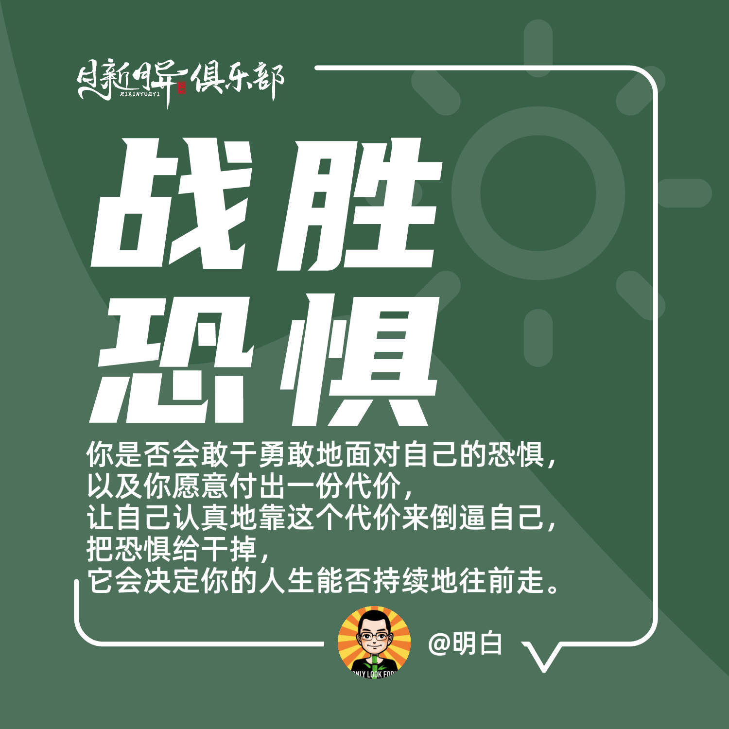 所以,你是否会敢于勇敢地面对自己的恐惧,以及你愿意付出一份代价,让自己认真地靠这个代价来倒逼自己,把这个恐惧给干掉,它会决定你的人生能否持续地往前走。