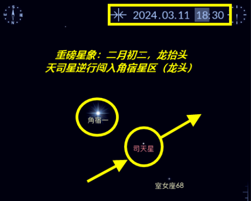 农历二月初二正是角宿从地平线出现的时点,古时人们观察苍龙七宿,在春天自东方夜空升起,秋天自西方落下,出没周期与一年农时周期相一致。春天农耕开始之际,苍龙七宿在东方夜空中慢慢上升,最先露出来的是明亮的龙首,角宿,龙抬头的缘故就是这样来的。