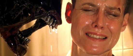 这个著名的特写使用了内置机械装置、细节更丰富的异形头部道具。