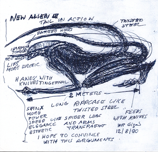 吉格尔为《鬼追魂》设计了若干种巨兽,这是被采用的方案。