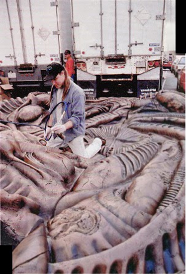 等身大的新异形原型完成品,吉格尔还参考了蜘蛛的腿部,并在手指间加入了锐利的钩爪。