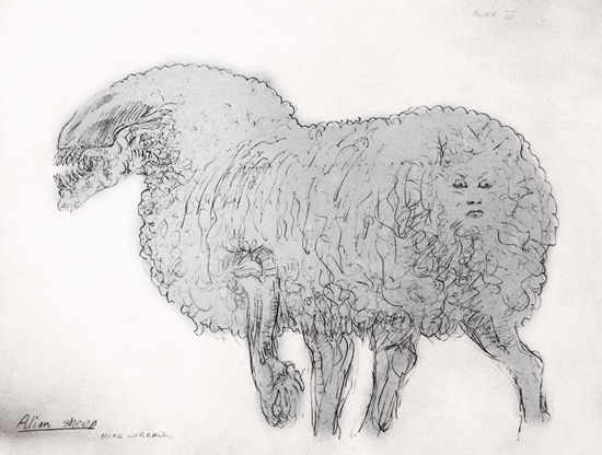 不过好在剧组没采用另一位概念艺术家迈克·沃瑞尔为本片设计的绵羊异形,朋友们感受一下。