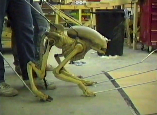 这是使用傀儡道具另外拍摄、随后合成的异形,四肢相对就比较纤细。