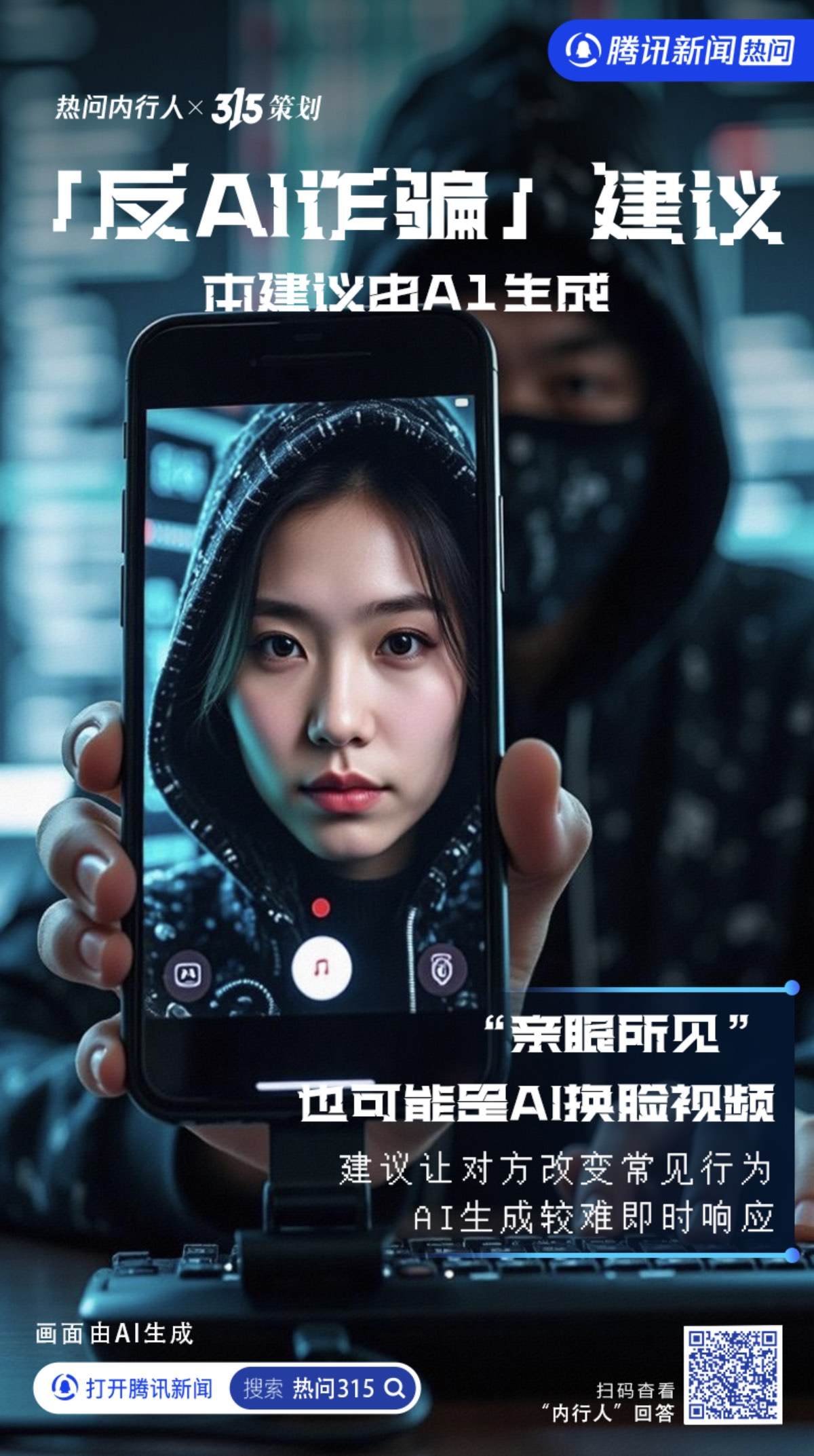 腾讯新闻发起《AI 给你的反 AI 诈骗建议》主题策划,利用 AI 技术生成创意视频,向大众科普常见的 AI 诈骗方式和实用的反诈建议。这种“以 AI 反 AI”的创意,不仅让观众在轻松的氛围中了解了反诈知识,也展现了腾讯新闻的社会责任感。同时,腾讯新闻在 315 之际聚焦各类“新骗局和老把戏”,联合多家媒体征集线索并报道,进一步增强了用户对品牌的信任感。