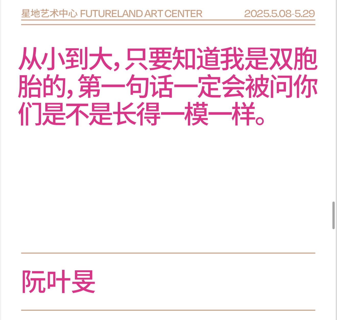 双胞胎是我自己请的模特,就是这件作品其实是我自己很私人的一个创作灵感,这个是来自于我自己的个人经验吧,因为我自己也是双胞胎。