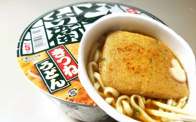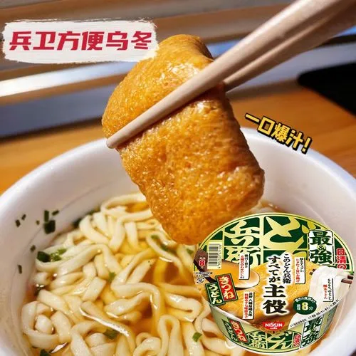 这款泡面也被称为“狐狸乌冬面”,因为在日本传说中,油炸豆腐皮是狐狸最爱的食物。吉冈里帆为兵卫乌冬面拍摄的广告中,就饰演了一只小狐狸。