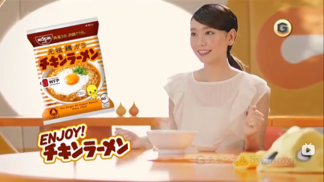 这款泡面可说是日本泡面的起源,日清食品于1958年时研发出,后来陆陆续续推出这一系列的泡面,其特色为包装上面必定有只小鸡。2013年代言人从“国民女儿”芦田爱菜交棒到“国民老婆”新垣结衣手中,系列广告是泡面的新吃法的展示。