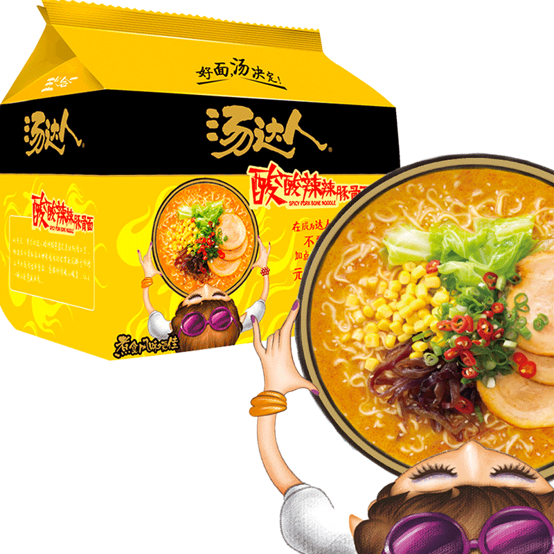 根据网评,这款酸酸辣辣豚骨面是汤达人人气最高的一款泡面了。超越了豚骨的存在,兼具了高汤的浓郁和酸辣的刺激。