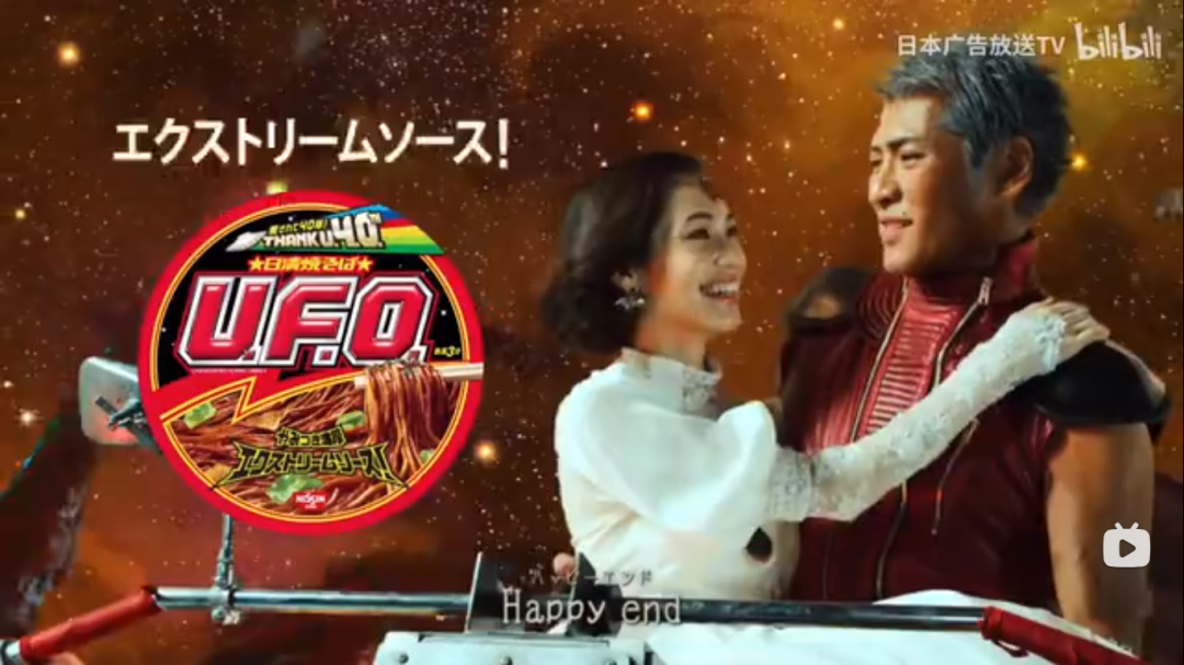 它曾是Twins代言的产品,广告很有创意,用UFO的简单动作,说明了泡面的吃法。