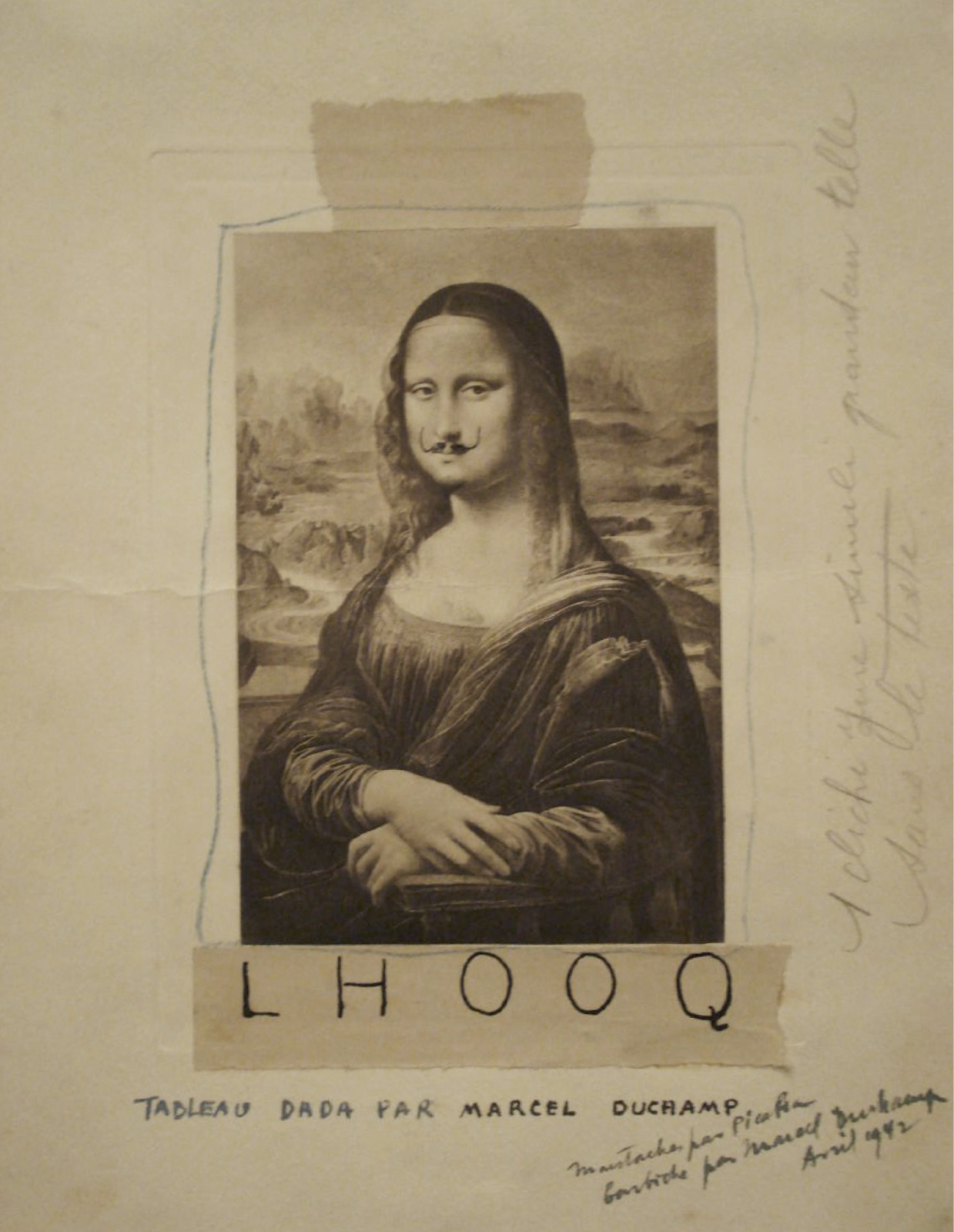 Detail of Marcel Duchamp’s ‘L.H.O.O.Q.’, (1919) originally published in ‘391,’ no. 12, March 1920
