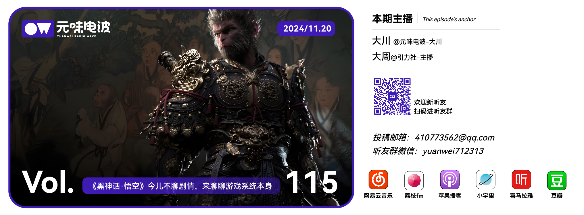 我们的节目,您可以在小宇宙、喜马拉雅、网易云音乐、荔枝 FM、荔枝播客,苹果播客,豆瓣书影音,微博搜索「元味电波」来订阅、收听。如果喜欢我们,也可以分享给你身边的朋友!