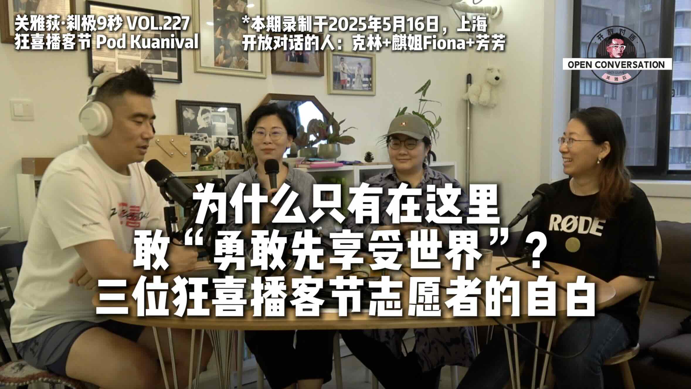 本期「关雅荻·刹极9秒」邀请到狂喜播客节创始人关雅荻,与三位在第三届“贰狂”中深度参与的志愿者——克林、麒姐Fiona、芳芳——围绕两天节期间的所见所感、组织方法与制度迭代、人与人之间的连接与成长,进行了一次接地气又高密度的复盘对谈。