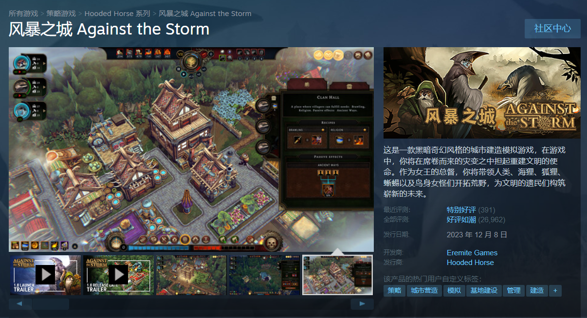 本期节目计划送出建造策略游戏:《风暴之城 Against the Storm》 中奖人:装甲战兔
