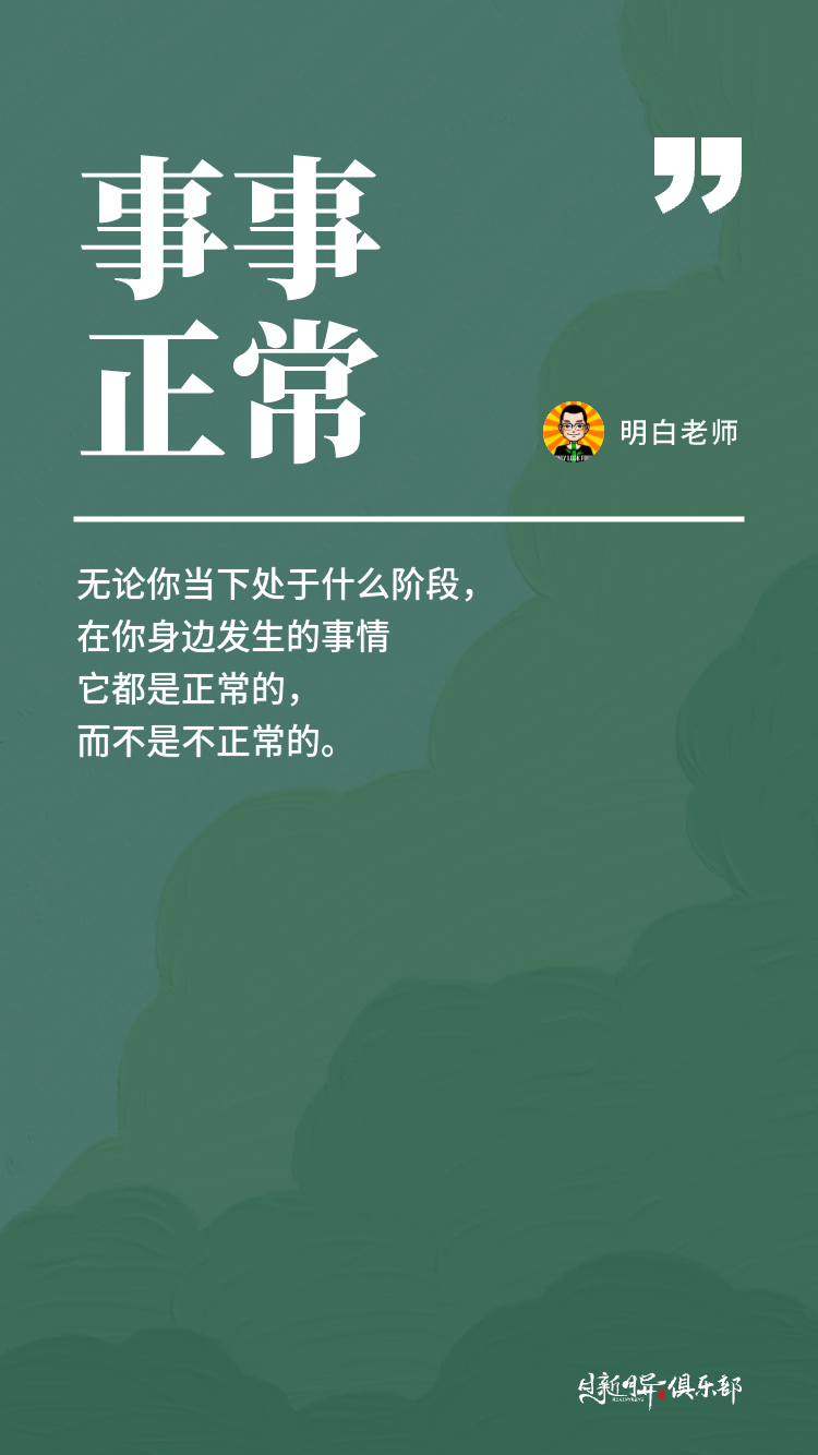 今天想分享一句话叫做无论你当下处于什么阶段,在你身边发生的事情它都是正常的,而不是不正常的。