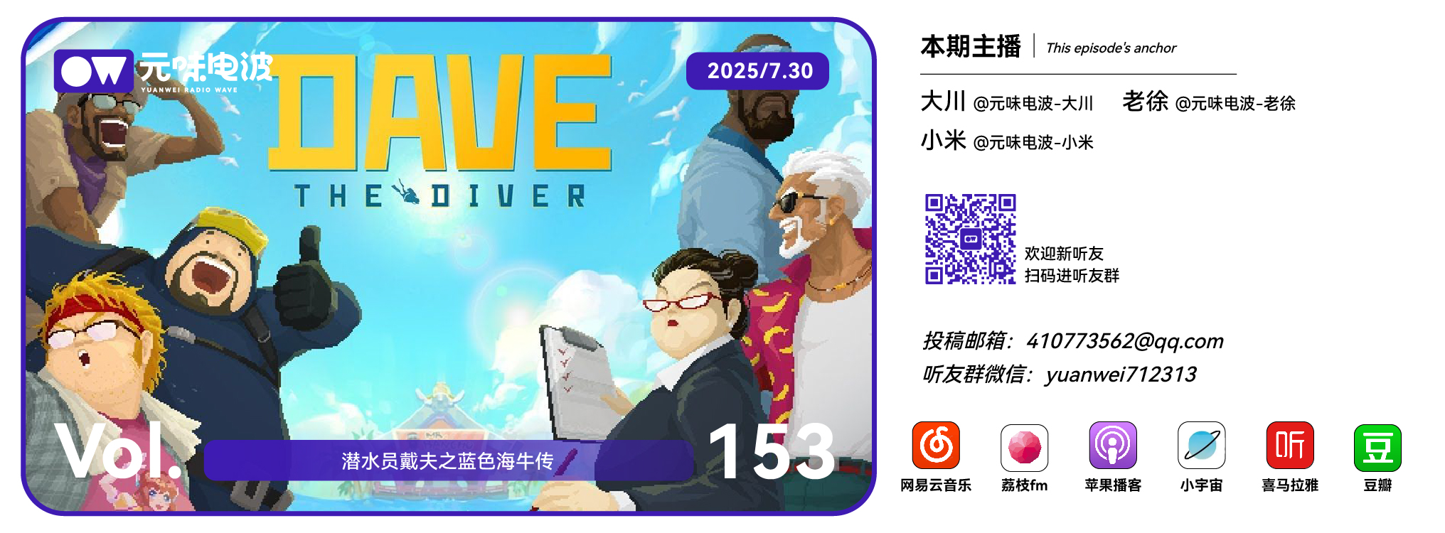 我们的节目,您可以在小宇宙、喜马拉雅、网易云音乐、荔枝 FM、荔枝播客,苹果播客,豆瓣书影音,微博搜索「元味电波」来订阅、收听。如果喜欢我们,也可以分享给你身边的朋友!
