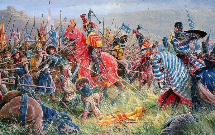 战斗在上午10点左右打响。威廉的弓箭手首先发起进攻。他们使用的复合弓(由木材、牛角和筋腱制成)射程远、穿透力强,密集的箭雨如蝗虫般飞向哈罗德的“盾墙”。英格兰士兵用圆盾组成严密的防线,试图阻挡箭雨,但仍有许多人中箭倒地——箭簇穿透薄木盾,扎进士兵的手臂、肩膀,甚至面颊。