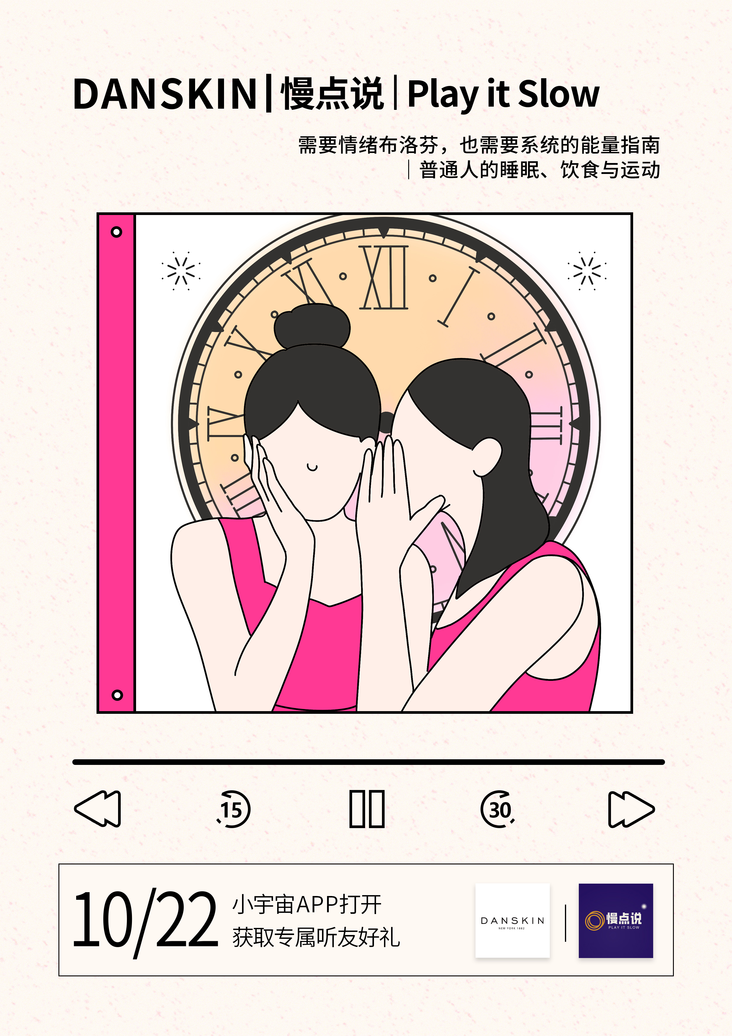 🍑宝搜索 DANSKIN ,或直接点击链接:m.tb.cn ,向客服报暗号「慢点说」,即可领取199-100的听友专属优惠券。秋冬了,让我们一起成为能量女孩!