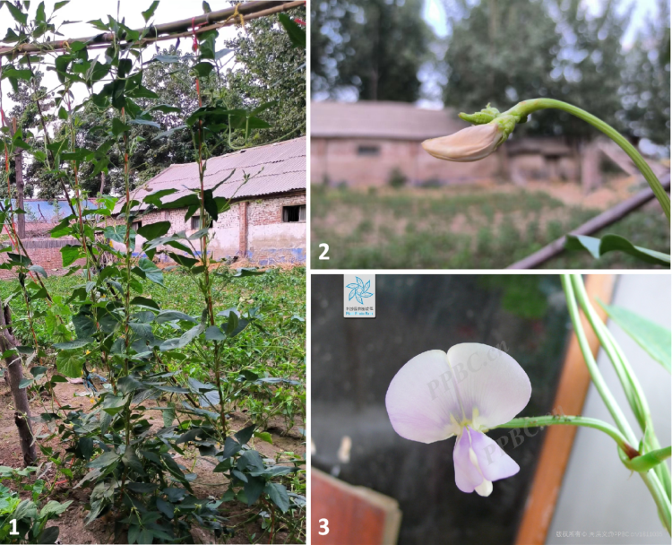 图1:豇豆植株;图2:未开放的蝶形花;图3:开放的蝶形花(图源见水印)