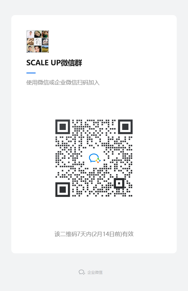 关注微信公众号SCALE UP收看完整版访谈,也欢迎加入新注册的官方微信群获取更多线下活动信息。