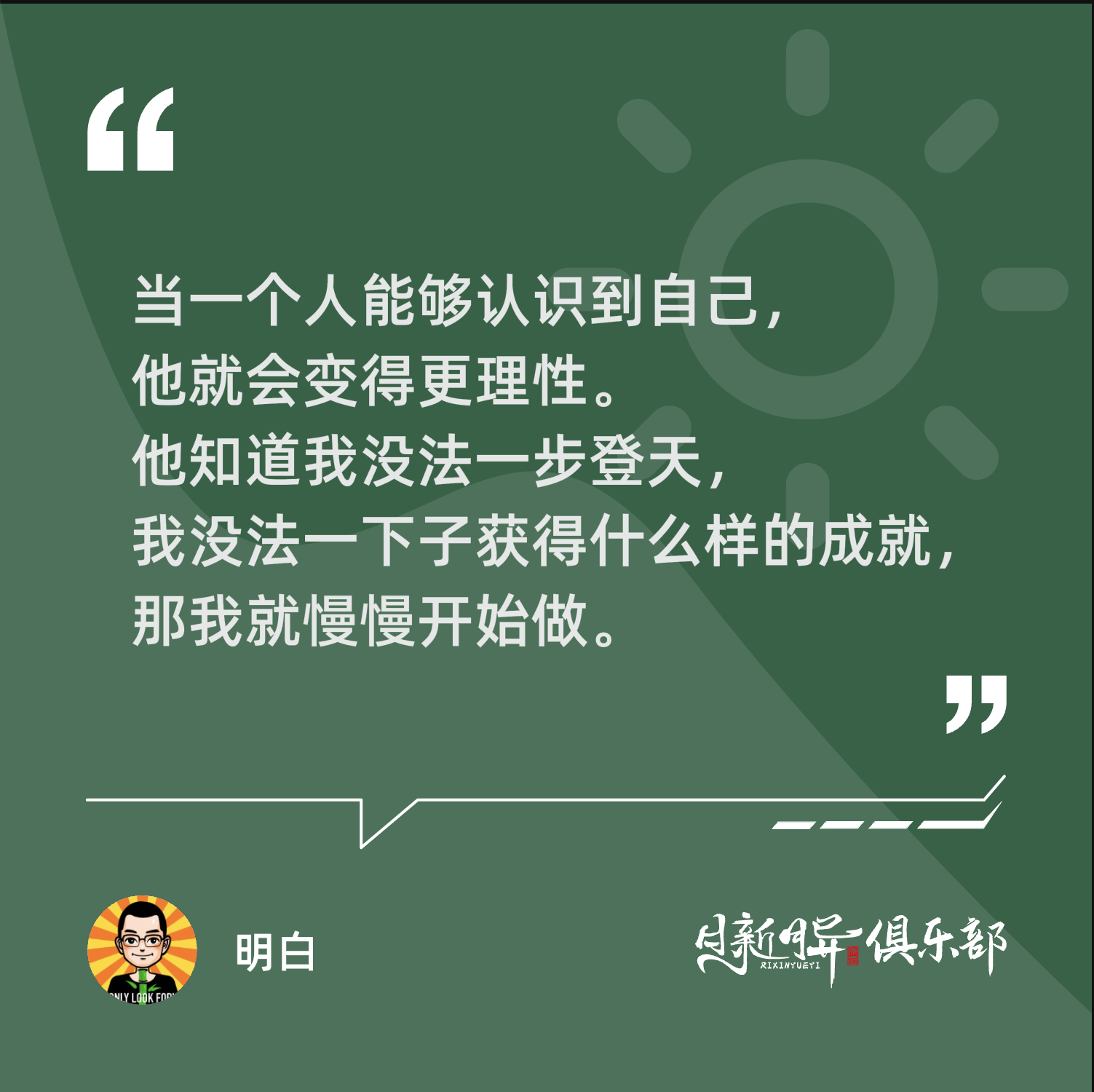 当一个人能够认识到自己,他就会变得更理性。他知道我没法一步登天,我没法一下子获得什么样的成就,那我就慢慢开始做。