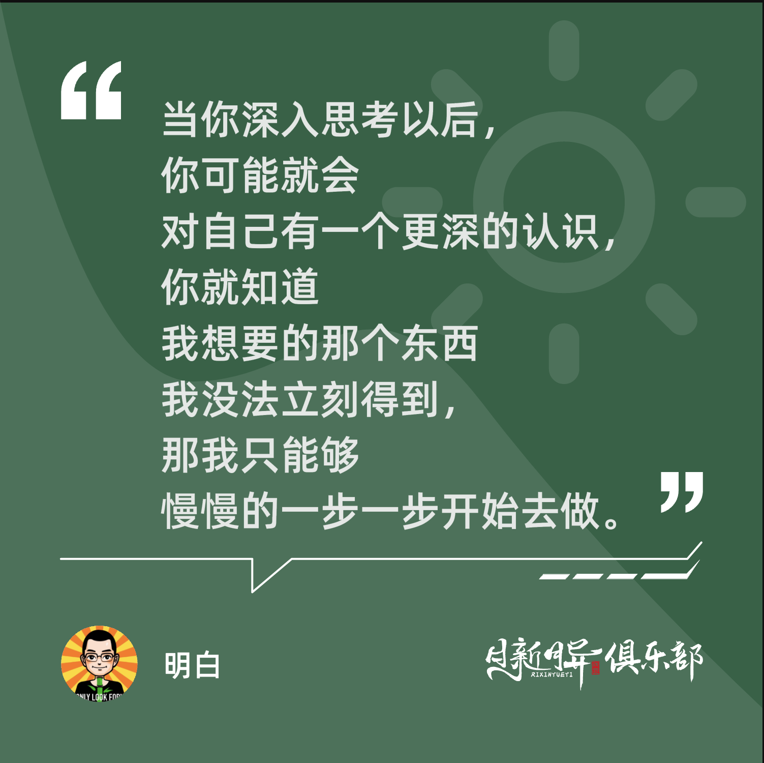 再来一个点是当你深入思考以后,你可能就会对自己有一个更深的认识,你就知道我想要的那个东西我没法立刻得到,那我只能够慢慢的一步一步开始去做。