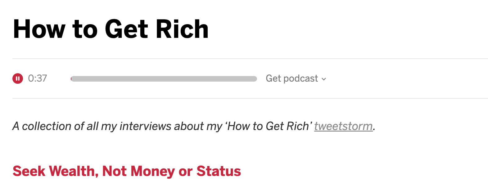 《How to Get Rich》是Naval在nav.al播客中最受欢迎的一集,讲述了如何通过积累知识、运用杠杆和拥有股权,实现长期可持续的财富自由,而不是靠出卖时间致富。