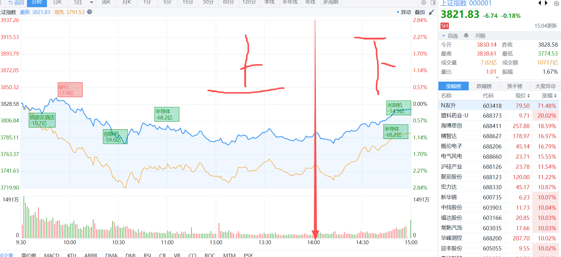 今天是典型的上下半场 走法非常凶残 下杀和拉升都具有很强的杀伤度 心态如果崩了今天是没有办法撑下来的